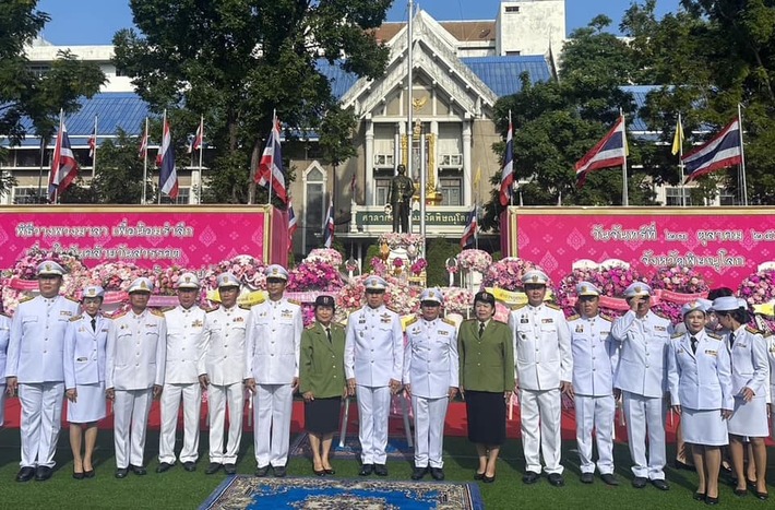 ดร.ภัทรวรรธน์ นิลแก้วบวรวิชญ์ ศึกษาธิการจังหวัดพิษณุโลก พร้อมบุคลากรของสำนักงานฯ และนิสิตฝึกปฏิบัติการวิชาชีพบริหารการศึกษา มหาวิทยาลัยนเรศวร ร่วมพิธีวางพวงมาลาราชสักการะ เนื่องในวันคล้ายวันสวรรคตพระบาทสมเด็จพระจุลจอมเกล้าเจ้าอยู่หัว ประจำปี 2566 เพื่อแสดงความจงรักภักดี น้อมรำลึกถึงพระมหากรุณาธิคุณอันยิ่งใหญ่ที่ทรงมีต่อพสกนิกรชาวไทยทุกหมู่เหล่า โดยมีนายภูสิต สมจิตต์ ผู้ว่าราชการจังหวัดพิษณุโลก เป็นประธานในพิธี พร้อมด้วย นายกเหล่ากาชาดจังหวัดพิษณุโลก นายพชรเศรษฐ์ บุญศิริสาริษา รองผู้ว่าราชการจังหวัดพิษณุโลก และหัวหน้าส่วนราชการ ศาล ตำรวจ เข้าร่วมพิธีอย่างพร้อมเพรียงกัน เมื่อวันที่ 23 ตุลาคม 2566